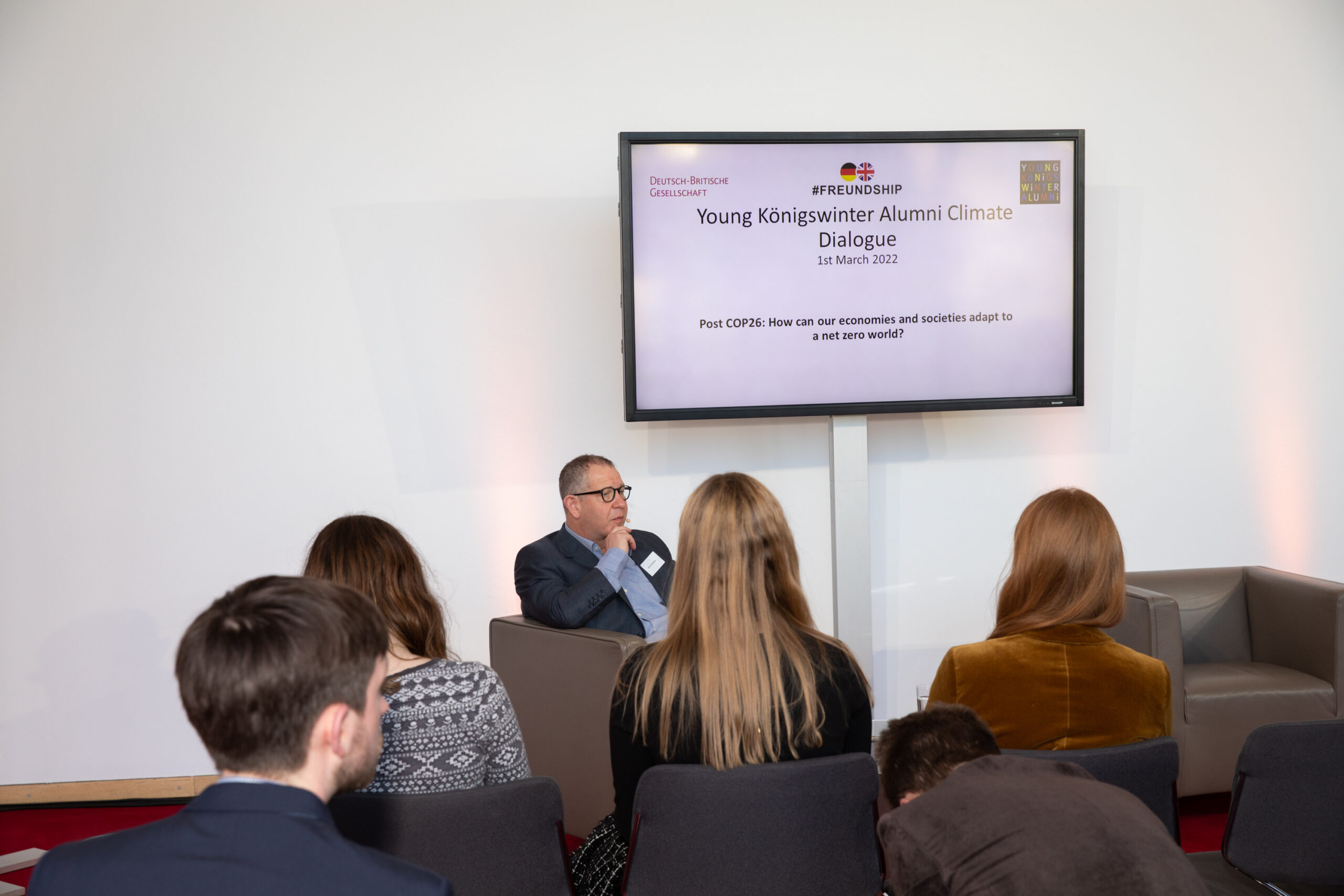 The Young Königswinter Alumni Climate Conference took place on the 1st of March 2022, having been postponed from December due to the emergence of the Omicron wave. 34 Young Königswinter Alumni from the 2021 and 2020 cohorts (as well as several from earlier years) met at the Axica, the British Embassy and on Zoom to discuss the question “Post COP26: How can our economies and societies adapt to a net zero world?” 24 alumni met in person, seven of them from abroad, and the remaining ten joined via Zoom, as did four speakers.