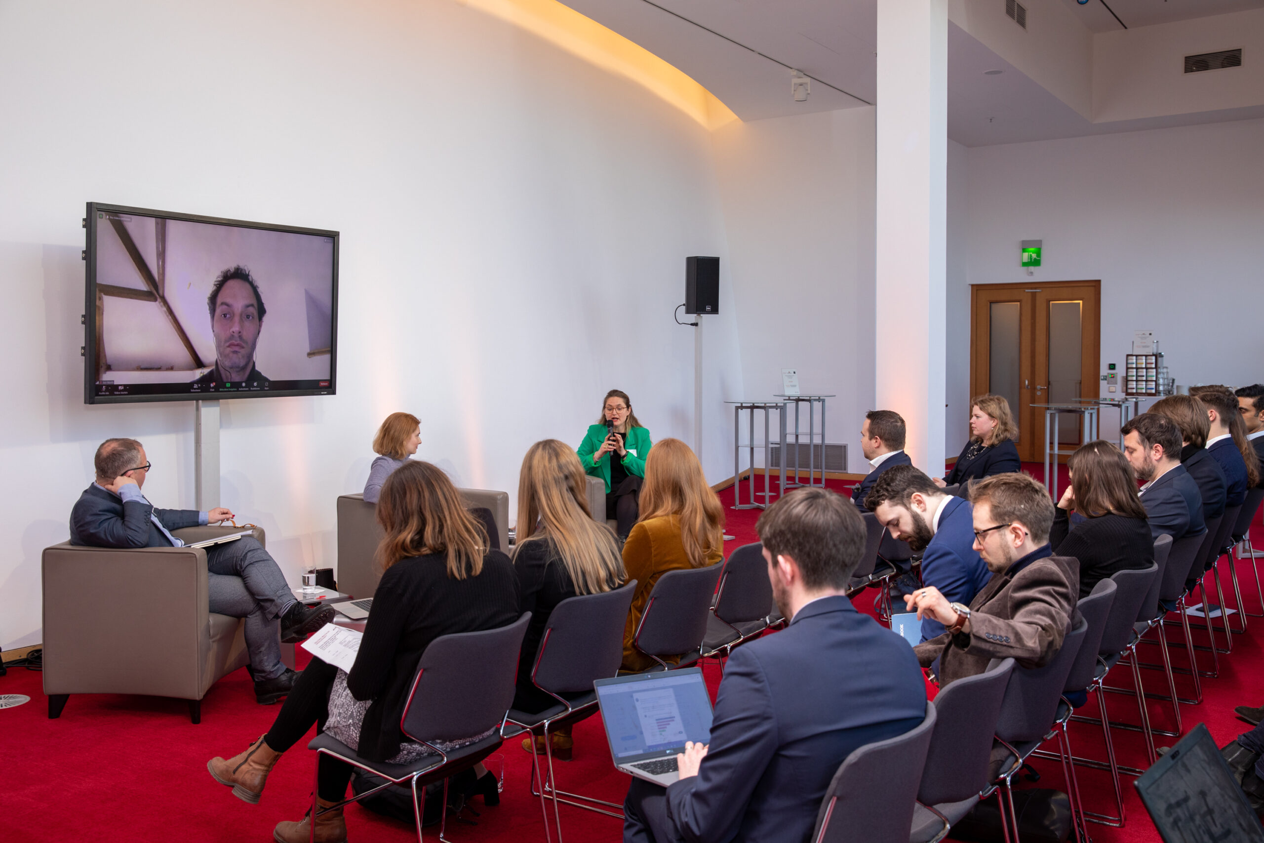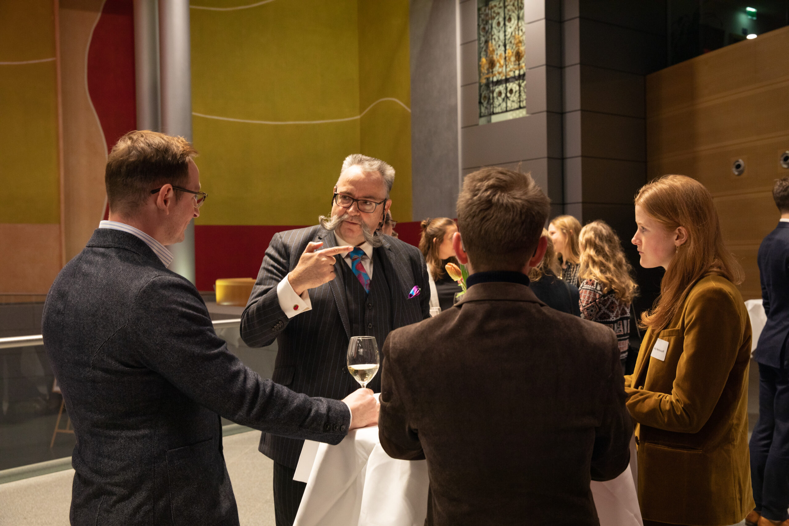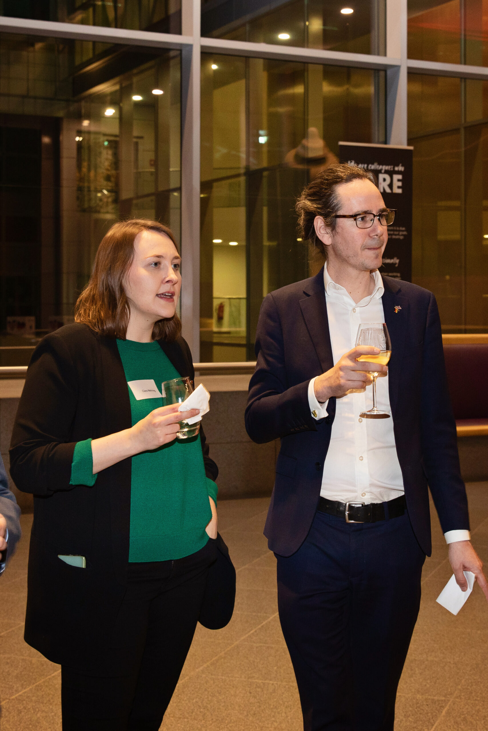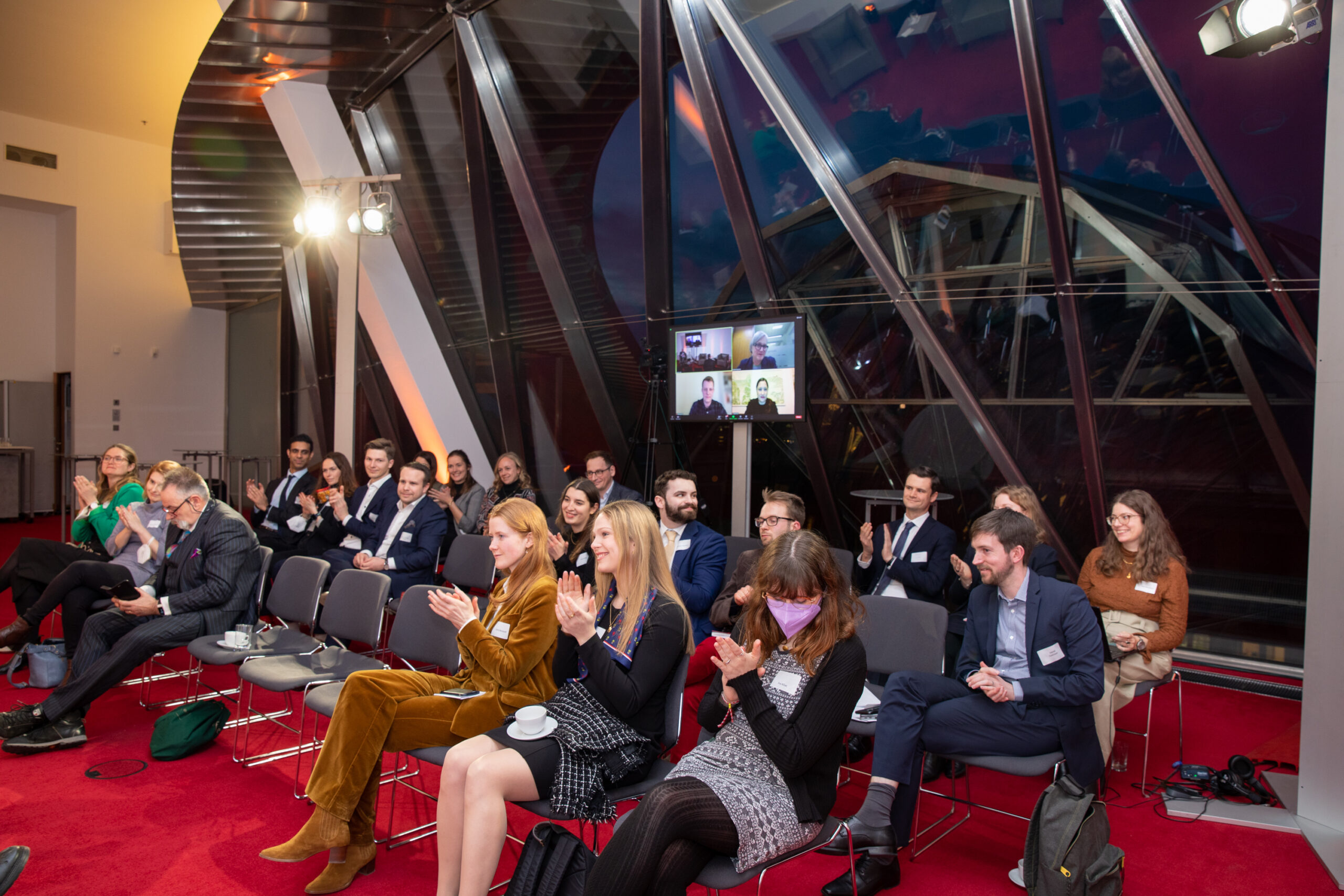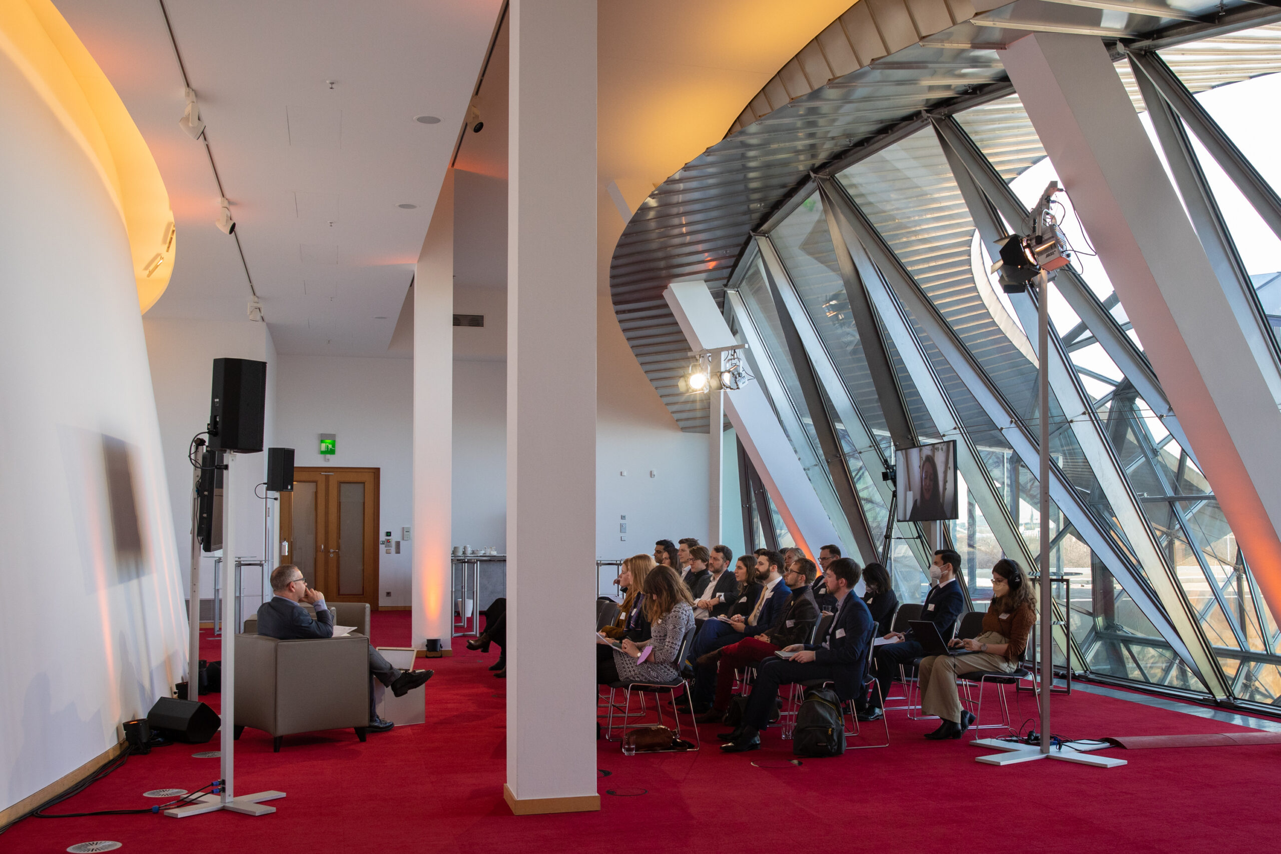 The event began in the Sky Lobby at Axica and participants were welcomed by Thomas Matussek, former ambassador to the United Kingdom and chairman of the Deutsch-Britische Gesellschaft e.V., and Julia Rawlins of the Young Königswinter Alumni e.V.. Journalist, author and executive director at Chatham House John Kampfner, who also chaired the Young Königswinter Conference 2022, chaired the panels and discussions.