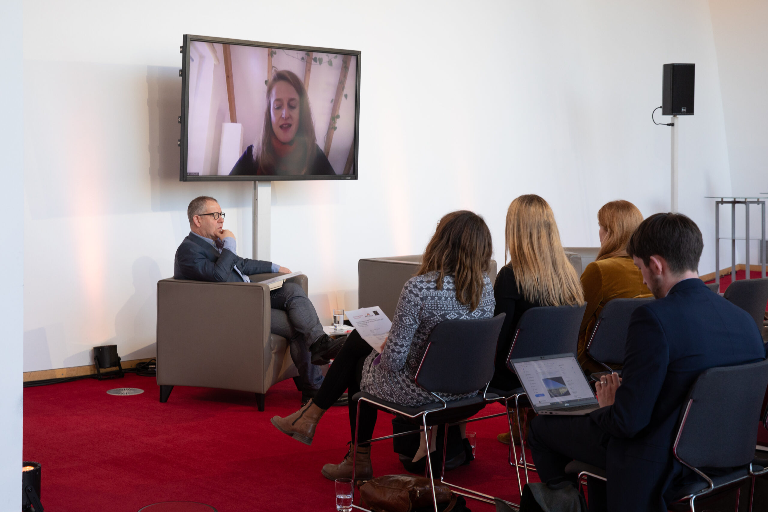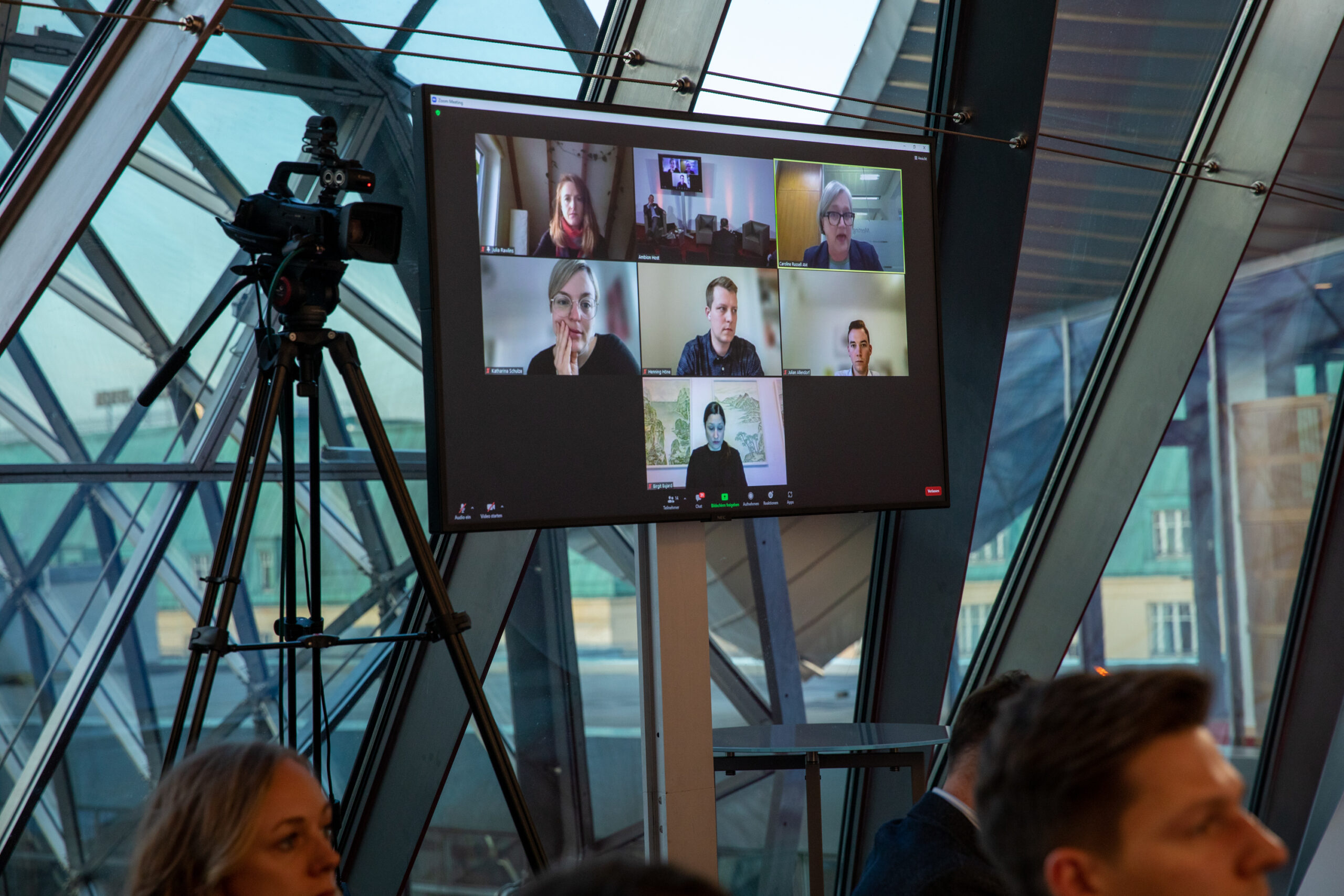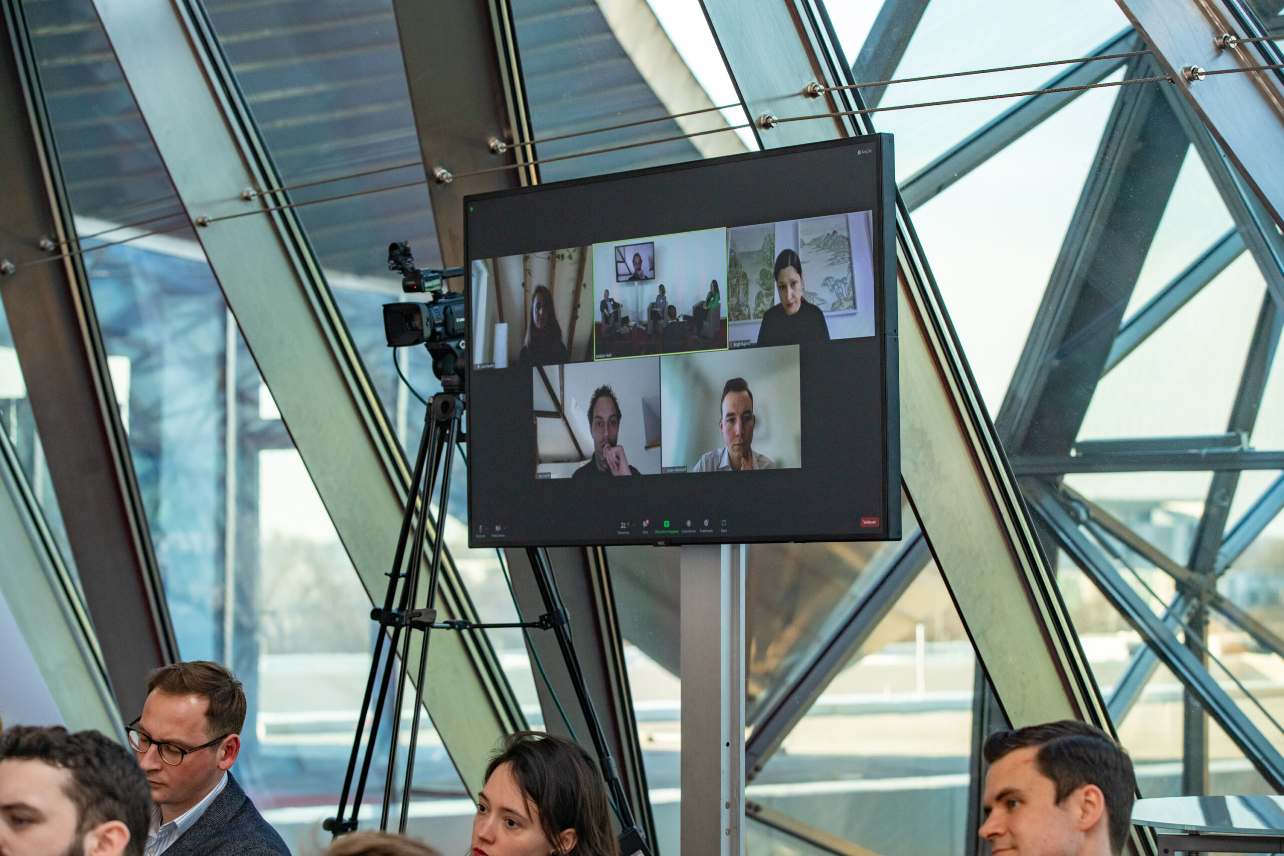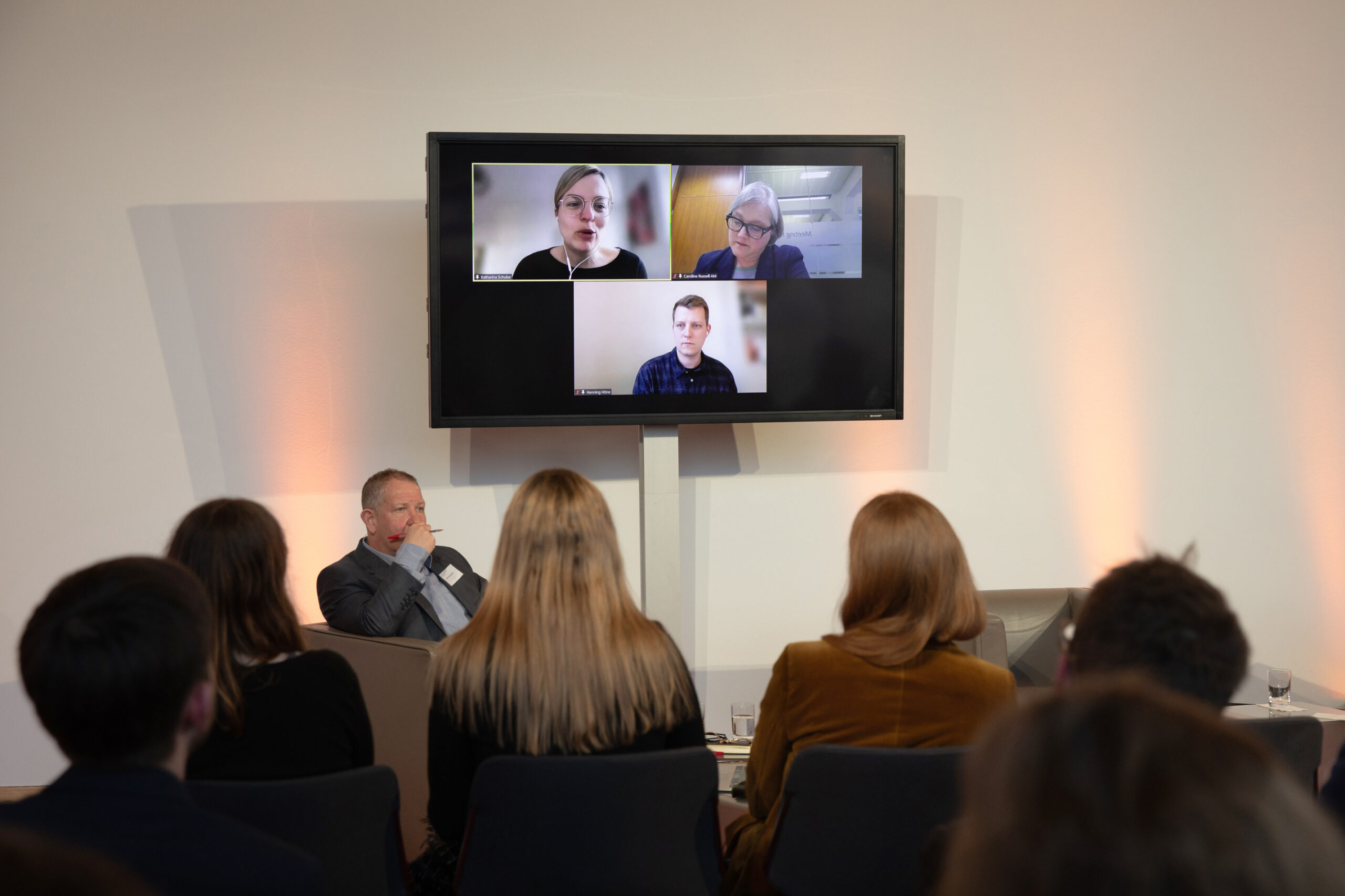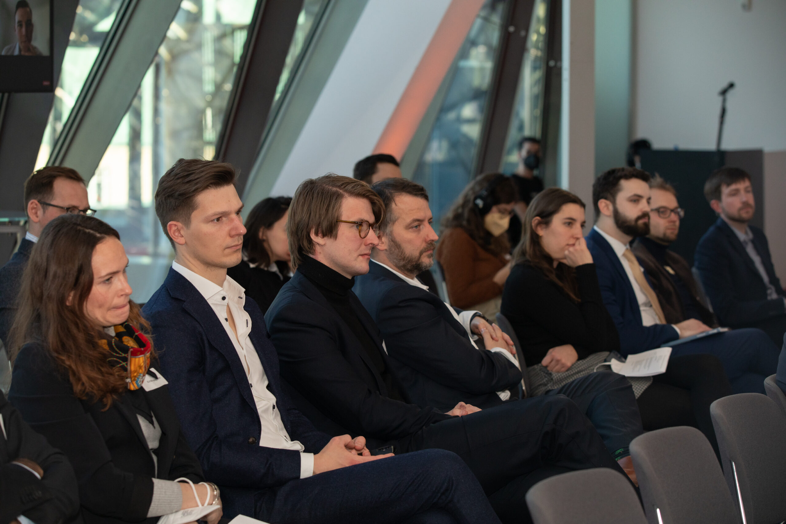 The event began in the Sky Lobby at Axica and participants were welcomed by Thomas Matussek, former ambassador to the United Kingdom and chairman of the Deutsch-Britische Gesellschaft e.V., and Julia Rawlins of the Young Königswinter Alumni e.V.. Journalist, author and executive director at Chatham House John Kampfner, who also chaired the Young Königswinter Conference 2022, chaired the panels and discussions.