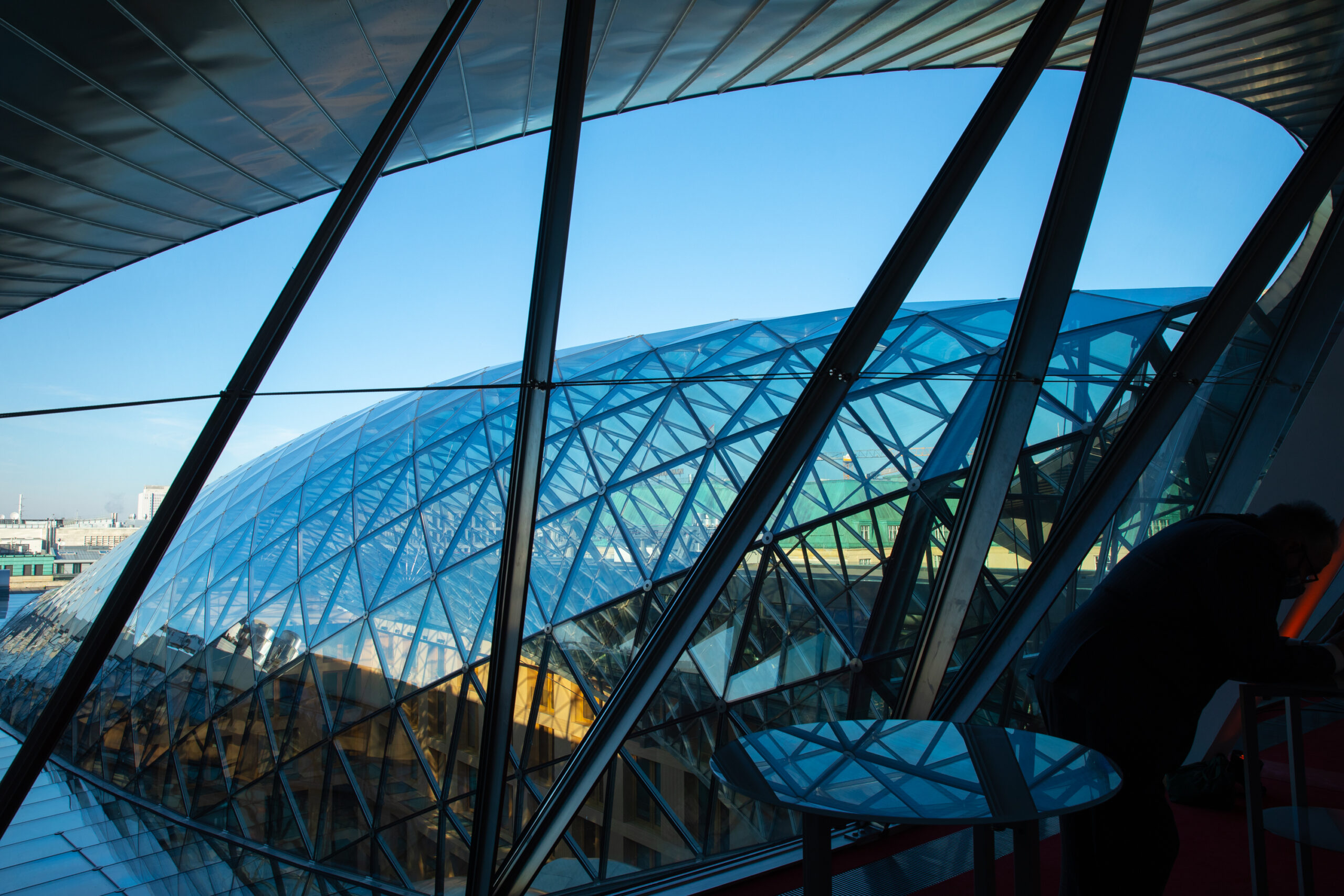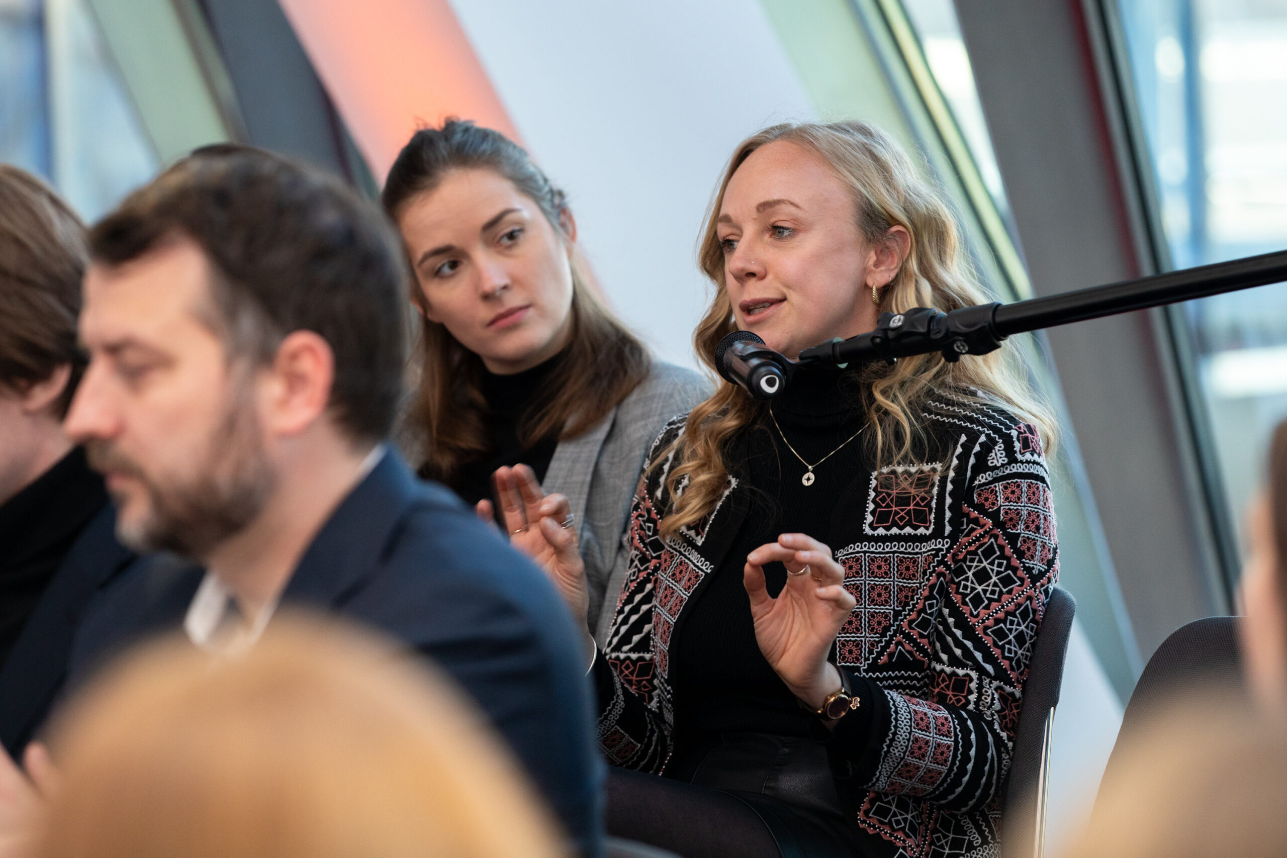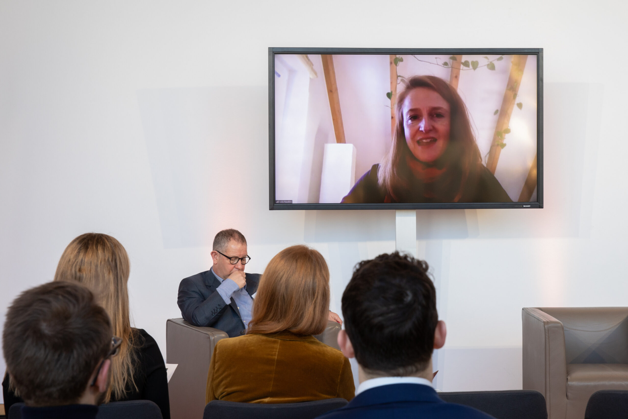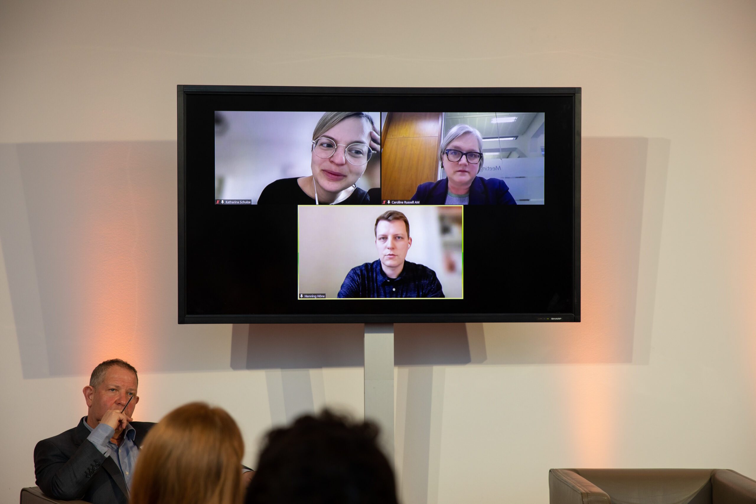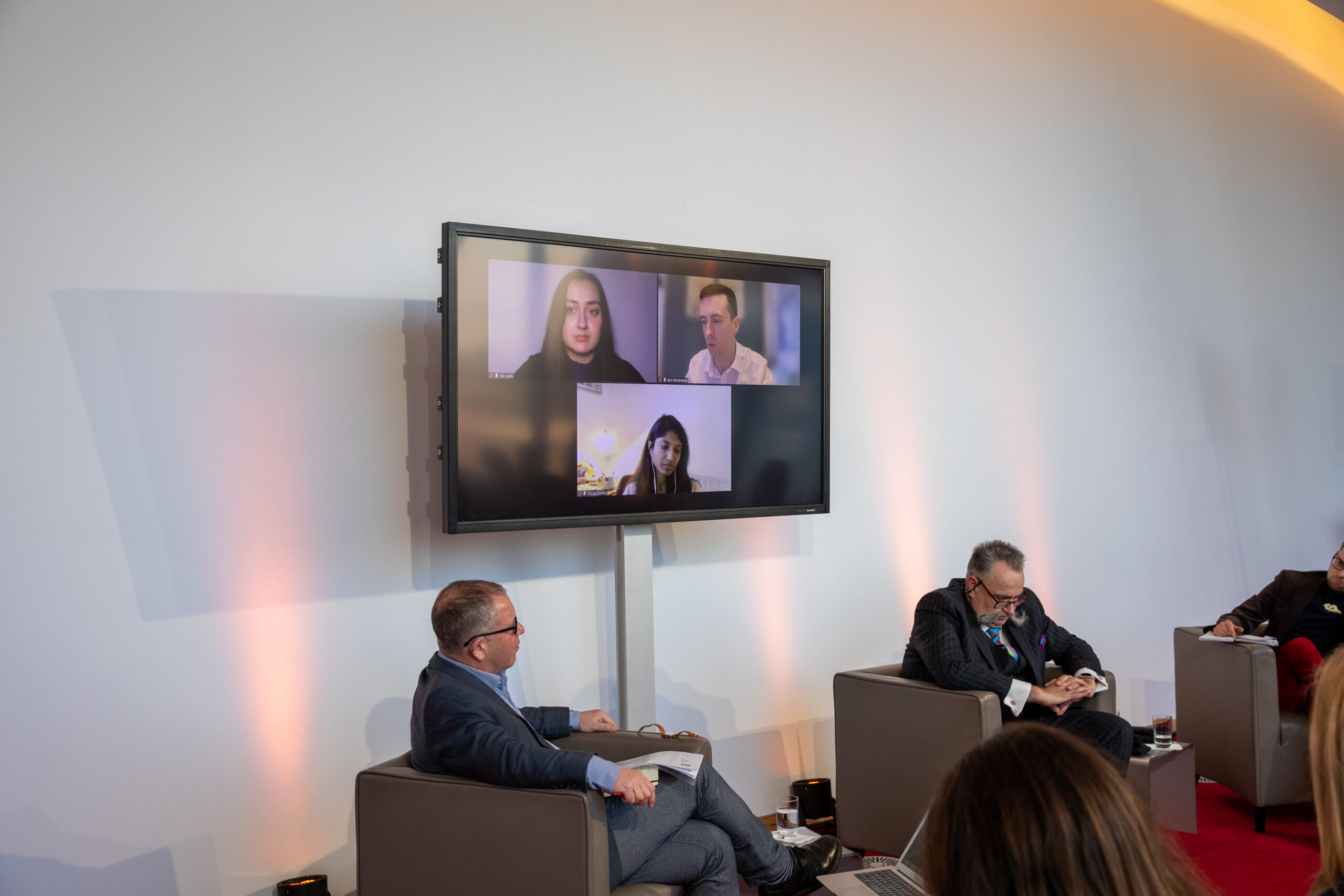 The event began in the Sky Lobby at Axica and participants were welcomed by Thomas Matussek, former ambassador to the United Kingdom and chairman of the Deutsch-Britische Gesellschaft e.V., and Julia Rawlins of the Young Königswinter Alumni e.V.. Journalist, author and executive director at Chatham House John Kampfner, who also chaired the Young Königswinter Conference 2022, chaired the panels and discussions.